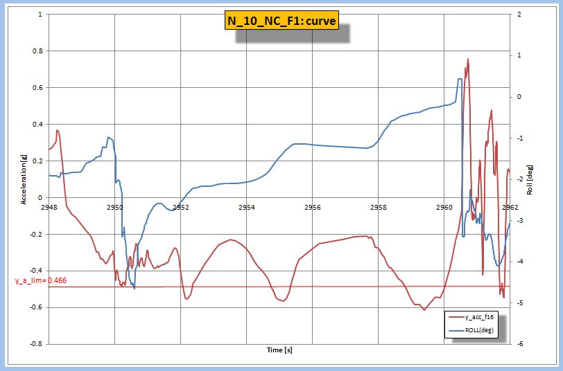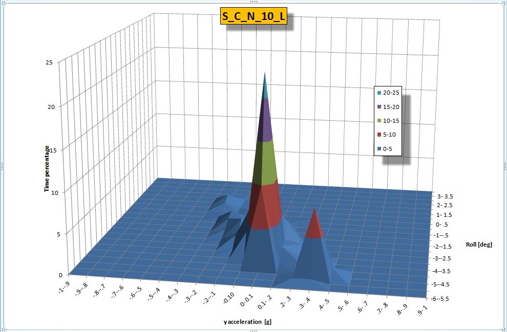 I trattati di dinamica del veicolo sono molteplici, vanno dall' approccio elementare a modelli complessi ed articolati spesso di improbabile applicabilità al mondo del testing; il mio personale accostamento al problema è avvenuto dovendo valutare l'impatto del pneumatico sulla prestazione del veicolo intesa sia in termini di performance che di comfort. Fissato il percorso e le condizioni di prova, inizialmente ho puntato tutto sulla misura dei principali parametri correlati al pneumatico: i tre angoli di Pitch, Roll e Yaw, le loro derivate prime rispetto al tempo (velocità angolari) e seconde (accelerazioni angolari) e le tre accelerazioni lungo gli assi cartesiani il cui contenuto energetico viene restituito dal valore di RMS. Estrapolando i risultati dei test e i parametri calcolati lungo la tratta ho spesso ottenuto indicazioni e tendenze di discreta attendibilità ma in qualche caso anche risultati contraddittori, mi sono così persuaso che nell'inseguire l'alchimia che consiste nel discriminare la componente di prestazione del pneumatico da quella dell'intero veicolo (superiore di almeno un ordine di grandezza perchè influenzata da: risposta sospensione anteriore, risposta sospensione cabina, risposta sistema di sterzo, risposta sistema frenante, distribuzione dei pesi statica, distribuzione dei pesi dinamica,...) avrei quantomeno dovuto tener conto delle cause che determinano la variazione di un parametro, avrei dovuto, ad esempio, considerare l'angolo di rollio normalizzato rispetto alla causa che lo determina: Accelerazione centrifuga misurata con accelerometro oppure calcolata dalla conoscenza della velocità e angolo di sterzo o entrambe opportunamente correlate.